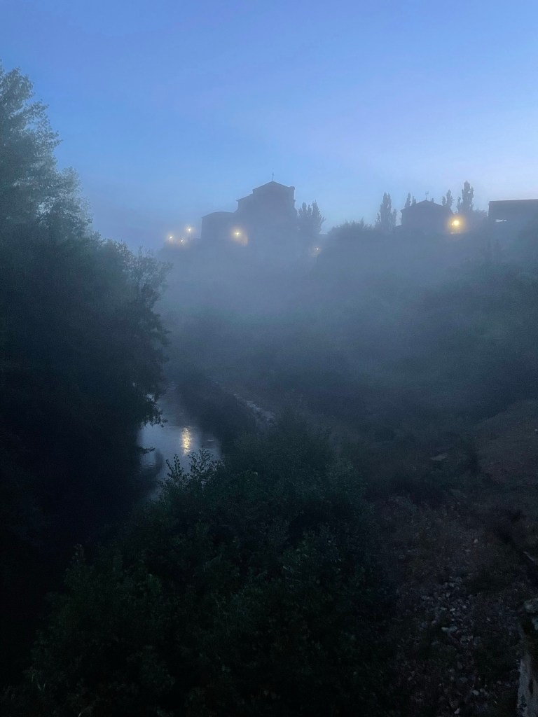 Greatfully the rain stopped over night, however a mist hungover Carrion de los Condes as we left the albergue. The route out of town joined an old Roman road.