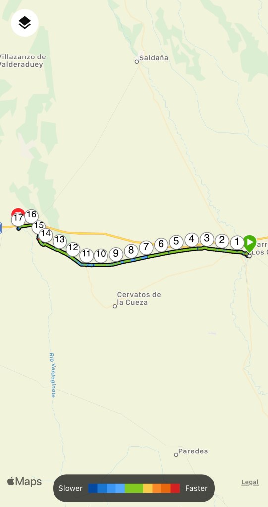 It was a long walk to the next village of Ledigos. The route followed the road providing a mundane trip to our lunch stop. After 22km it was a very welcome break and I wolfed down a Spanish ommelete.