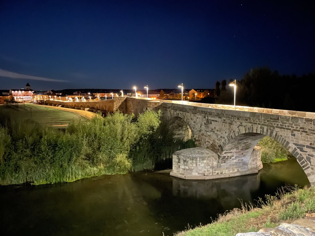 Here there is a large bridge that features in the literature about the Camino. Seeing it lit up in the night made it more impressive.