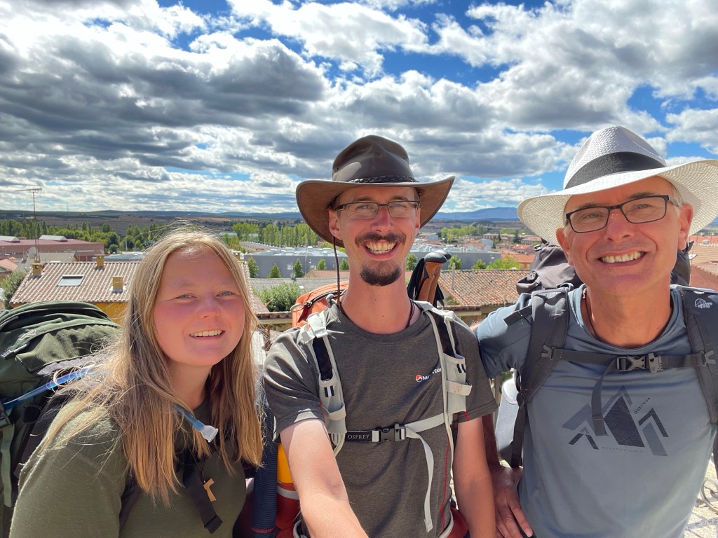 It was still too early for cafés to be open for breakfast, so we pressed on until we finally arrived at café at 8am. Sitting outside having a croissant, Arnica stopped by. The three of us walked together into Astorga.