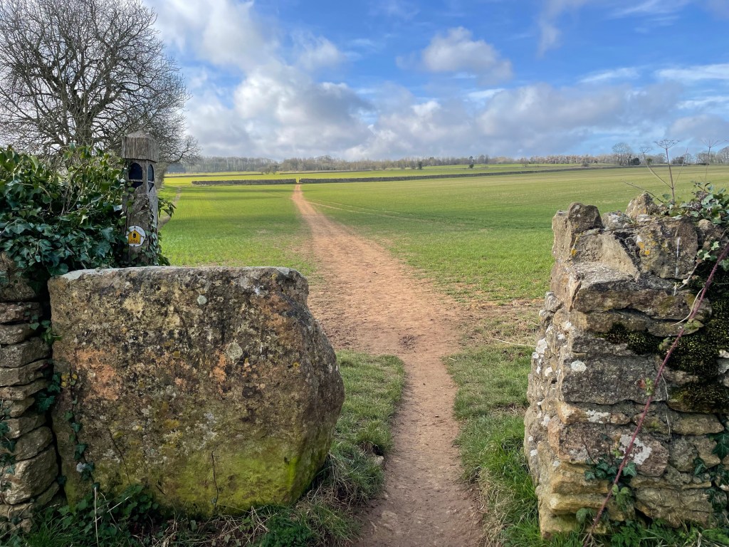 I set off at 0830hrs into the crisp sunshine; not a cloud in sight. It was straight up hill from the get go to reach the summit of Dover’s Hill. I was presented with views across the Cotswolds.