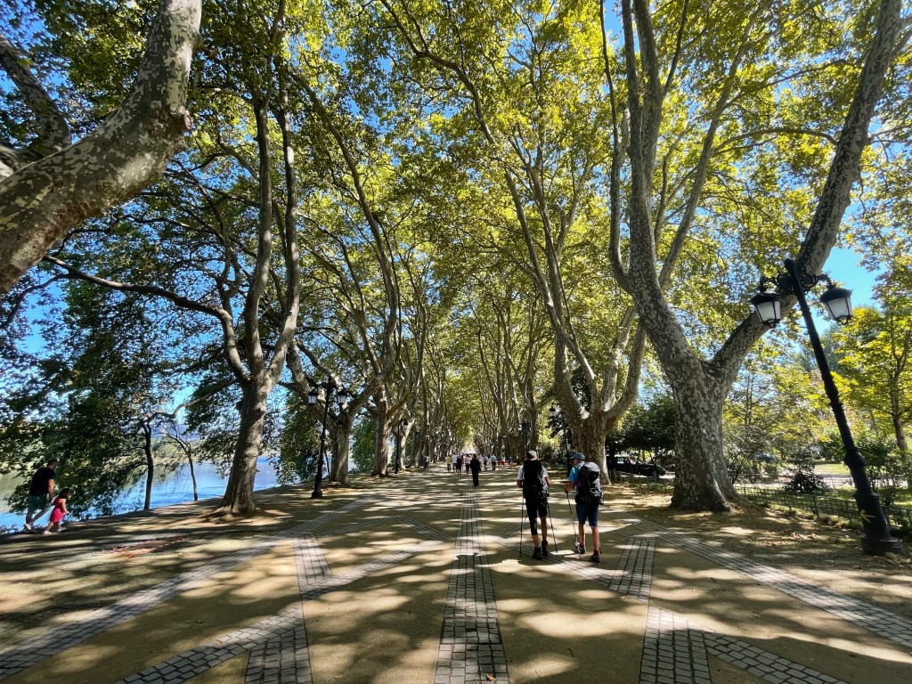 The route today was much better, the best so far. Mostly through woodland and farm tracks; little road Walking. The temperature didn’t reach the heights of the last few days. As we walked into Lima, it was along the river bank and through an avenue of trees. It was very picturesque.