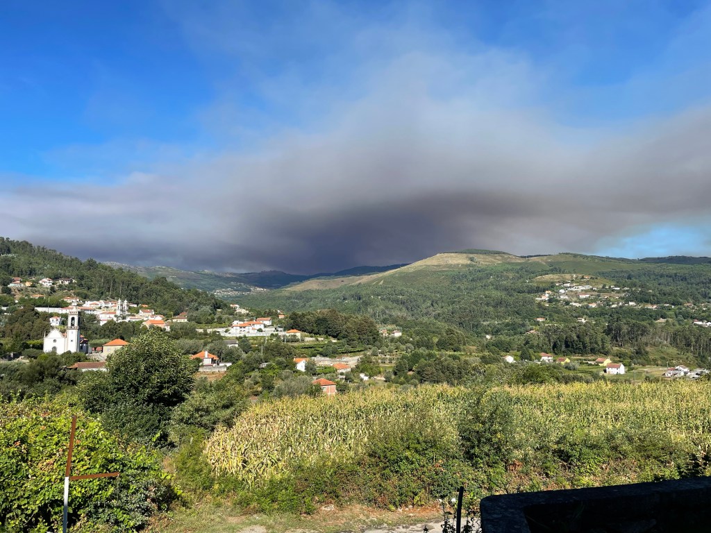 It sits on the hillside where on the opposite side of the valley, there is a huge smoke cloud, presumably from the wildfires, Portugal is currently experiencing.