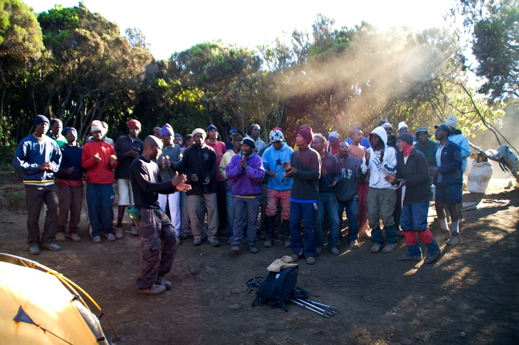 It was an early start and my appetite had returned however worrying I still hadn’t had a movement, those Imodium tablets are super effective! After breakfast we all had a group photograph with the porters and they performed a song for us.
