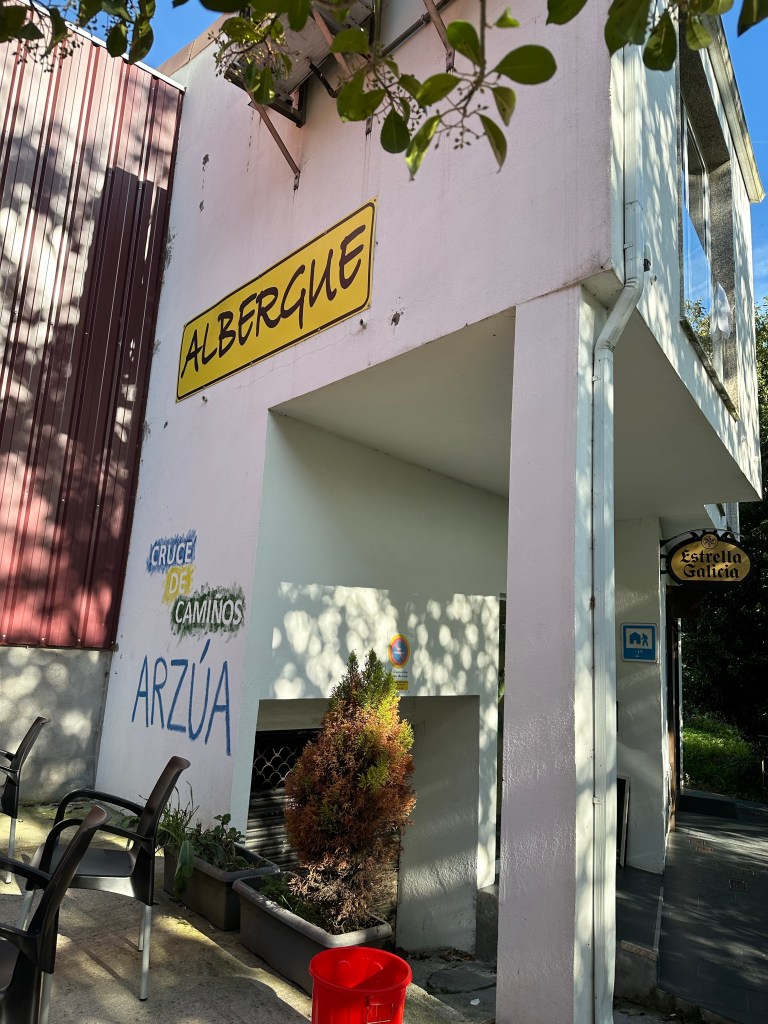 With full stomachs we tackled the last hill into Arzua, arriving into the albergue Cruce de Caminos. It is a lovely albergue that has towels!