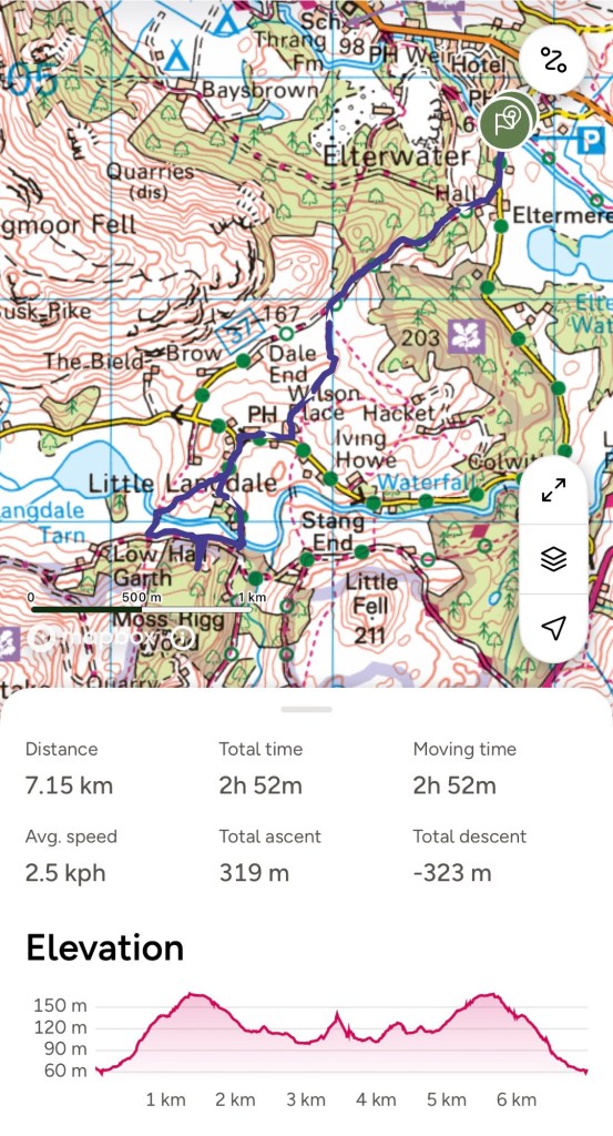 We got the bus to Ambleside then a connection to Elterwater. After lunch at a little bistro, we set off towards Little Langdale.