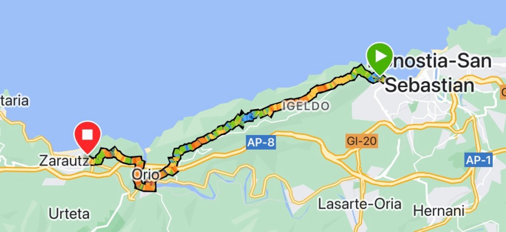 Vineyards became my surrounds as I made my way to the top, where I was treated to a fantastic view of Zarautz beach. I spent a while sitting on a bench admiring the vantage point. A French man I had been leap frogging from Orio, joined me.