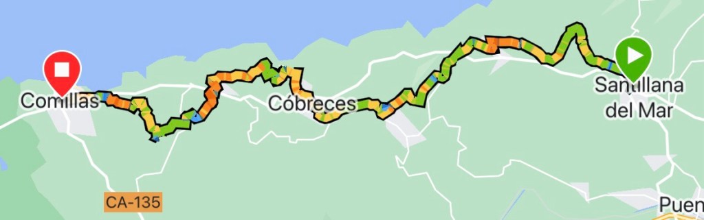 The last stretch into Comillas was easy going, more rural villages and quiet roads, before long I arrived. It is market day in the town, and having lost my sunglasses at some point today, I went on the hunt for a new pair – none of the stalls or shops sold them!