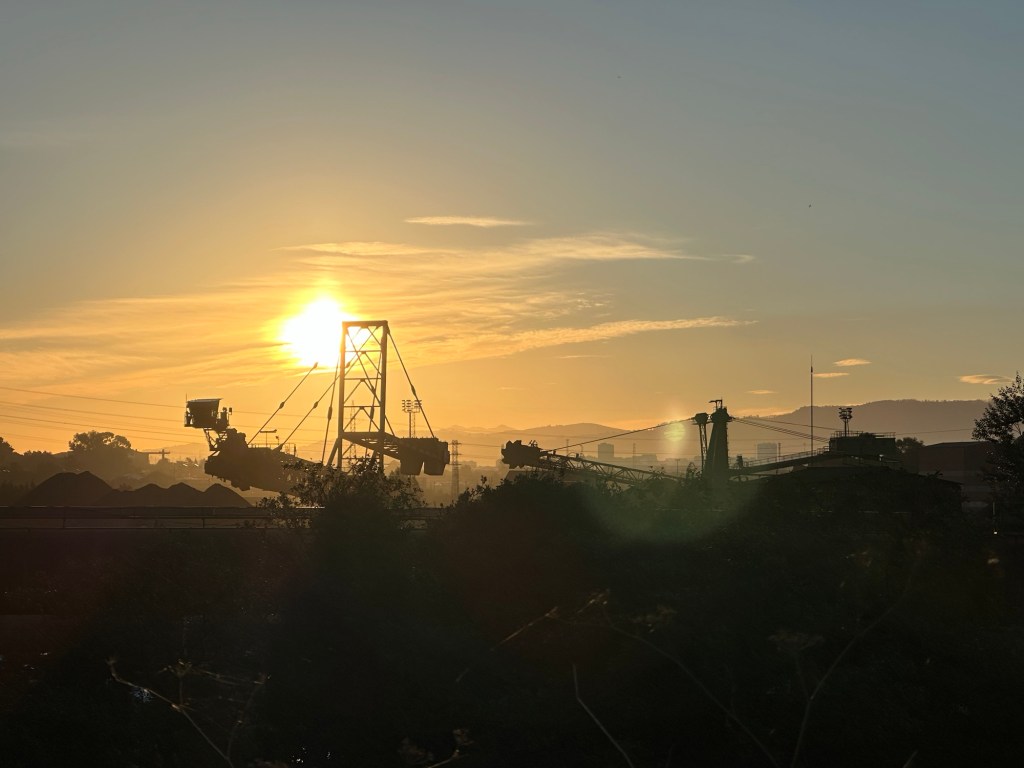 The city gives way to an industrial town, with steelworks and coal yards covering the landscape. Plumes of smoke rose from chimneys and lorry clattered past.