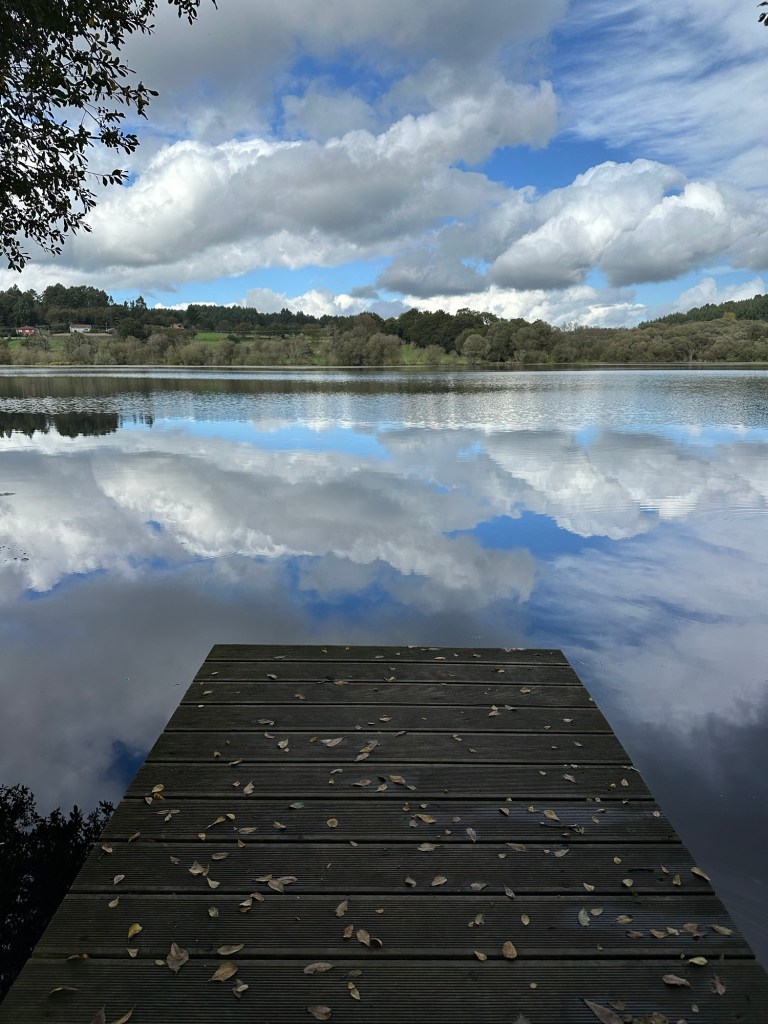 5km on we arrived into Sobrado in high spirits. We passed a small lake on the way into town that caused us to pause for pictures.