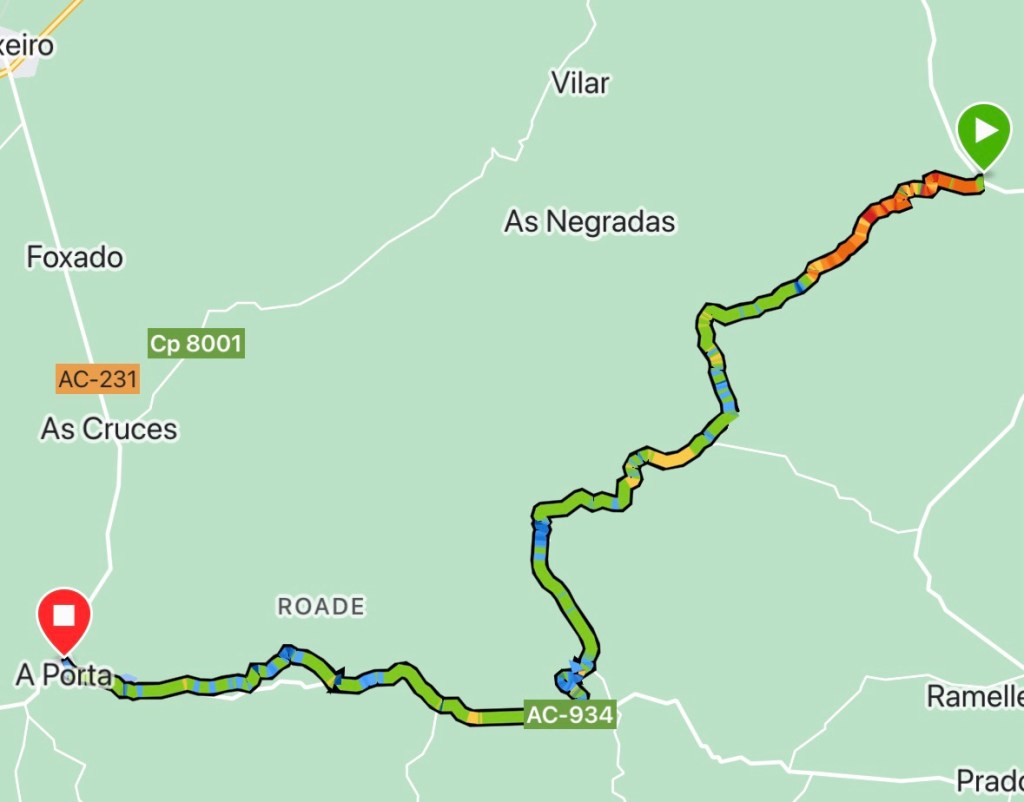 For once there were a few restaurants open on a Monday and finding something to eat wasn’t a problem. Tomorrow we join the Camino Frances, on the run into Santiago. We will have to book ahead now as it gets busy – I had forgotten how busy the Frances is, it took me three attempts to find some beds!