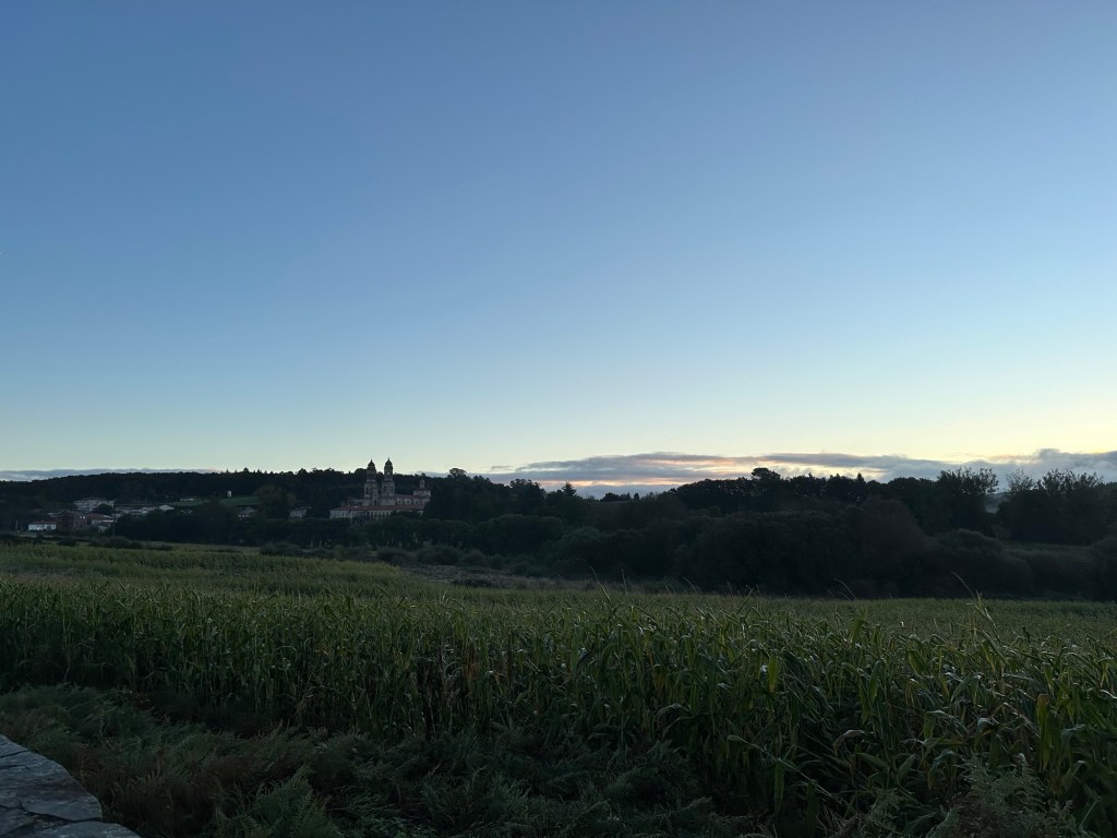 As dawn arrived we set off. Mist clung to the fields that surround the Mosteiro de Santa Maria. I was keen to get warm, so I went full pace to reach the first hill of the day.