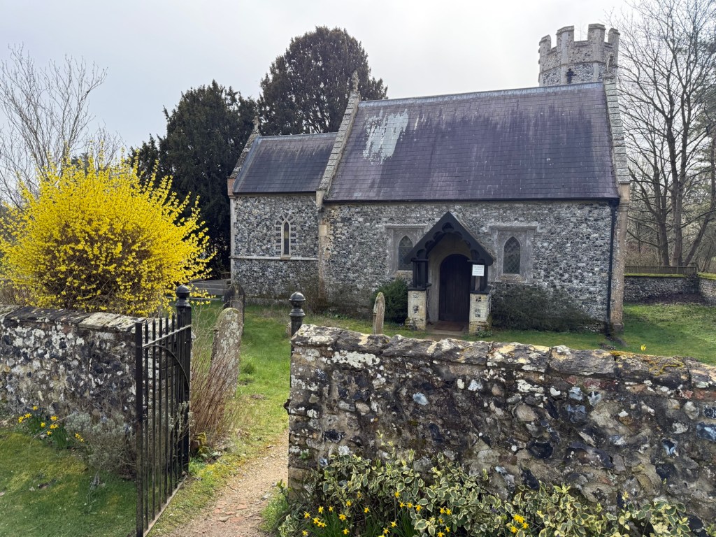 The smell of pine filled the air and I leisurely trekked over soft forest paths to a tiny church, All Saints at Santon Downham. A small round tower, an oddity compared to the ones I had visited so far.