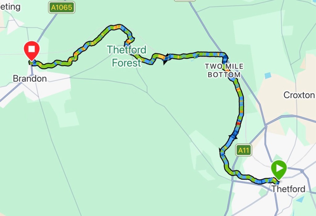 The route twisted and turned hugging the banks of the river until I Reached the ‘The Brecks’, where it veered away into the forest.