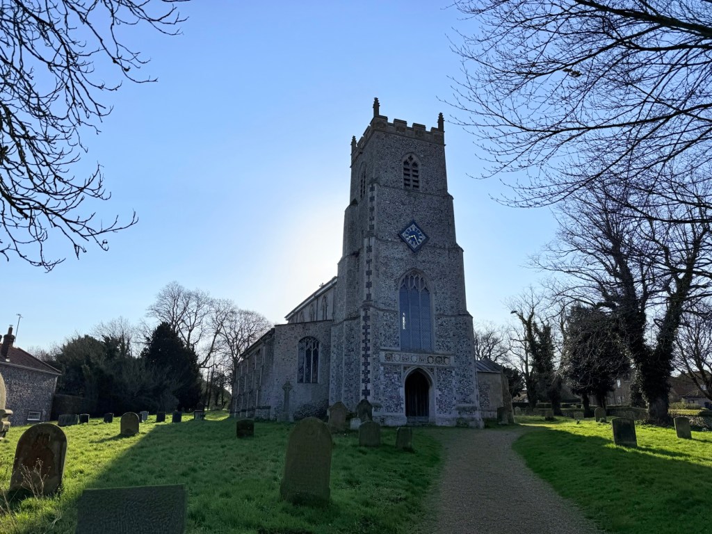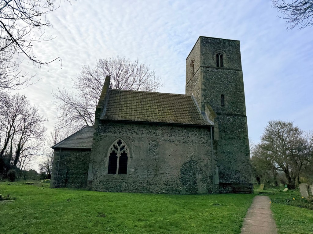At North Pickenham I had a break at St. Andrew’s – disappointed it was closed. I rested in the sunlit porch watching the sleepy village.