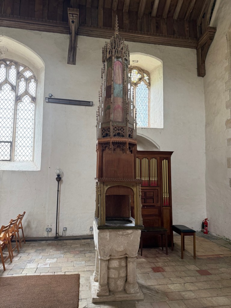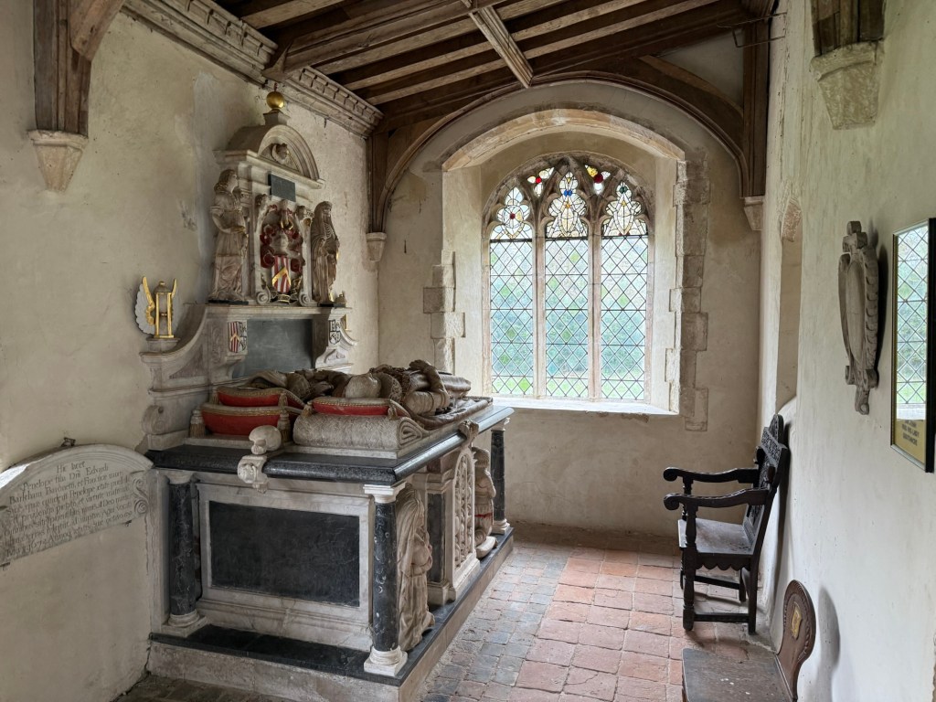 The last 3km was agony, the temptation to skip South Acre was strong, but my dogged trait to keep to the path, made me stick to the route. Although no stamp at the church, it was unique with an elaborate font and a tomb to Sir Edward Barkham. A Lord Mayor of London in 1621.
