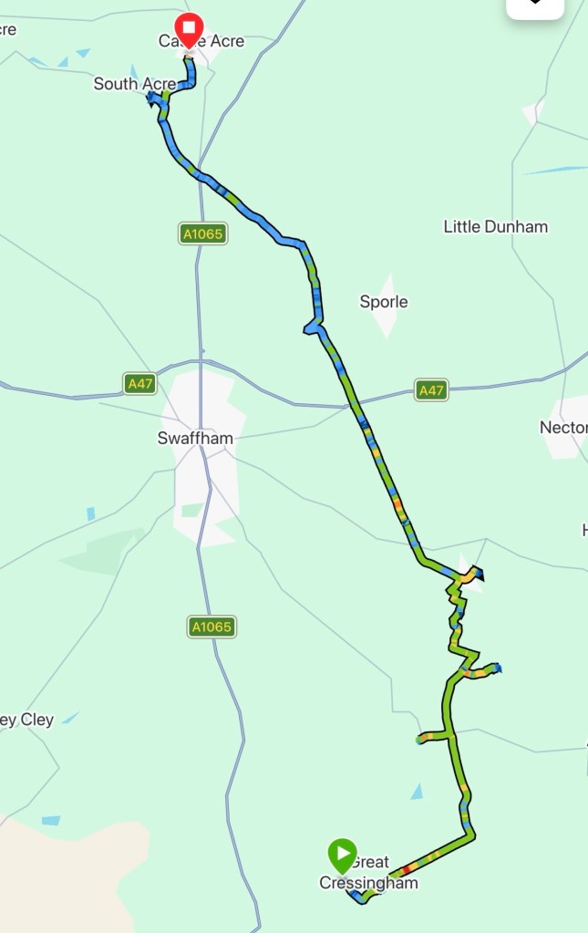 My journey is now in the late stages. Only 36km left to Walsingham, it’s going far too quick.