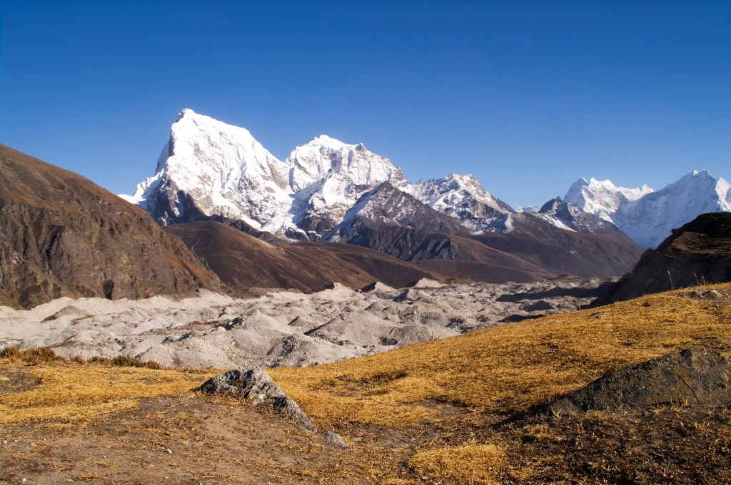 I took a short walk around a ridgeline behind the teahouse giving views of the Ngozumba glacier and the glory of Cho Oyu. This is the first time I had seen a glacier up close and it wasn’t what I expected. You expect it to be white and ice like, but it wasn’t, it was grey and drab.