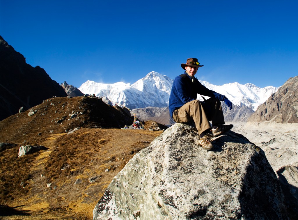 I found a very convenient rock to poise for a picture with Cho Oyu as the back drop; you could even see the snow trail from the the jet stream blowing over the top. One of my favourite pictures of the trip was taken here. Pete had decided on a siesta so I would have to take him to this spot the next day.