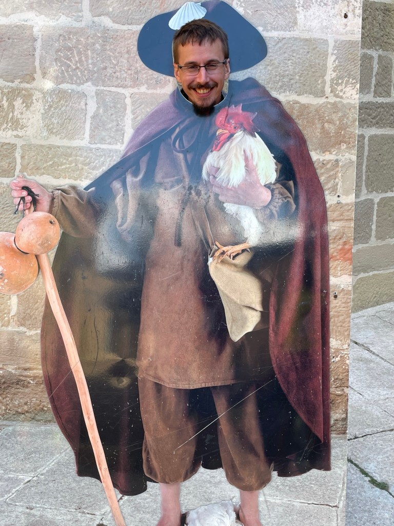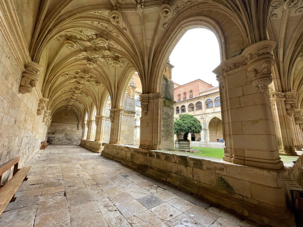 As I’m running out of space in my credential, I went up to the San Zorro monestry to buy another. I also had a look around, those of you who have seen ‘The Way’ may recognise the cloister. I got the stamp as well!