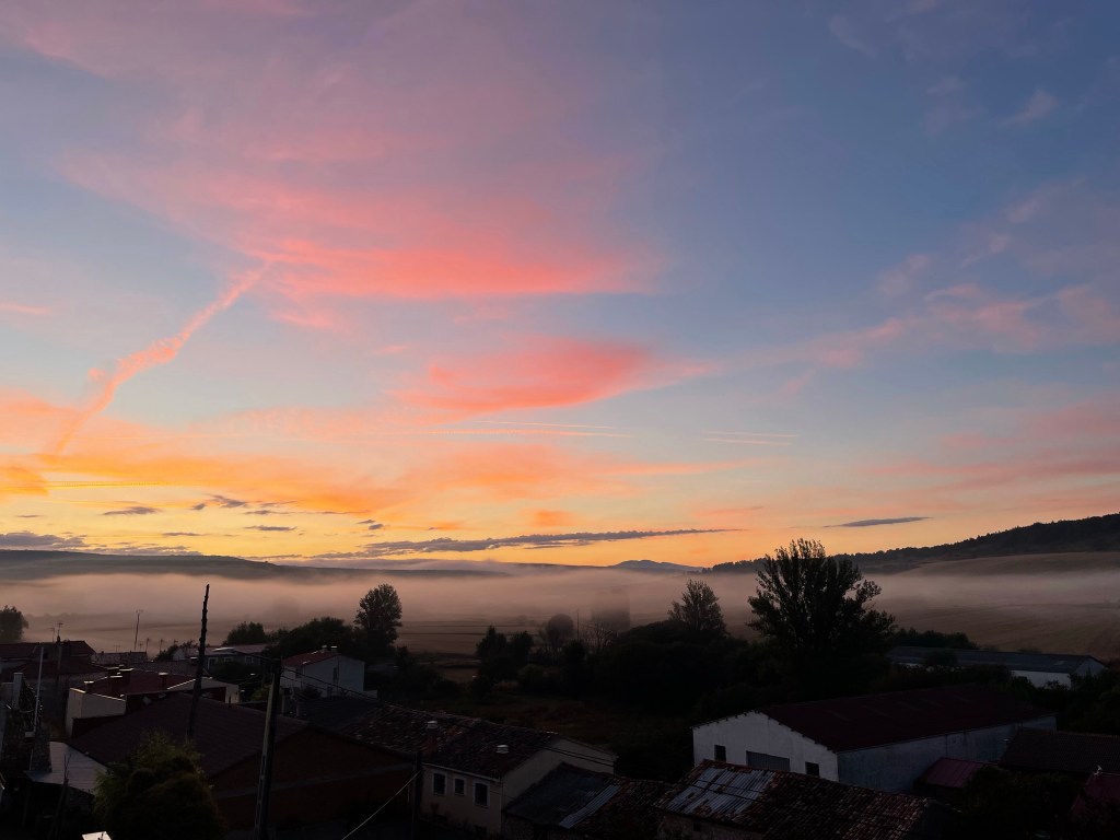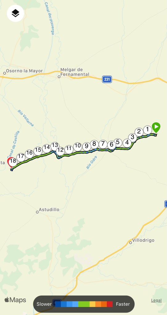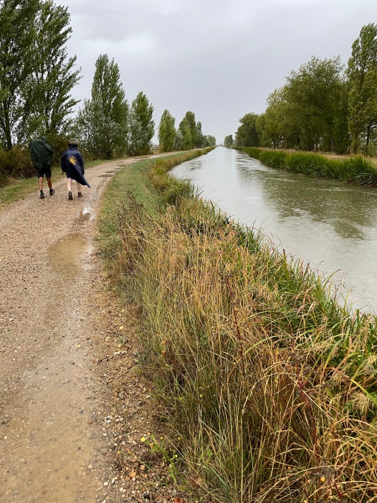 The word of the day is ‘Rain’ because that is all that it has done until 2pm. Right from the go, it was ponchos at dawn. We had a sluggish start, but at sunrise we left. The route out of the village joins the ‘Canal de Castilla’ and follows this into Fromista.