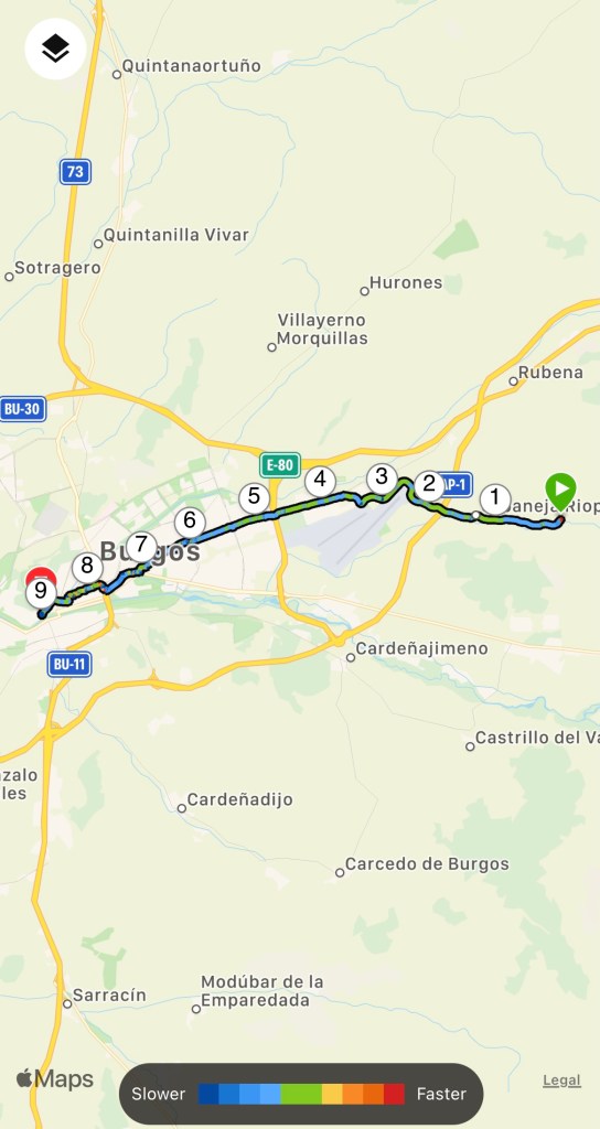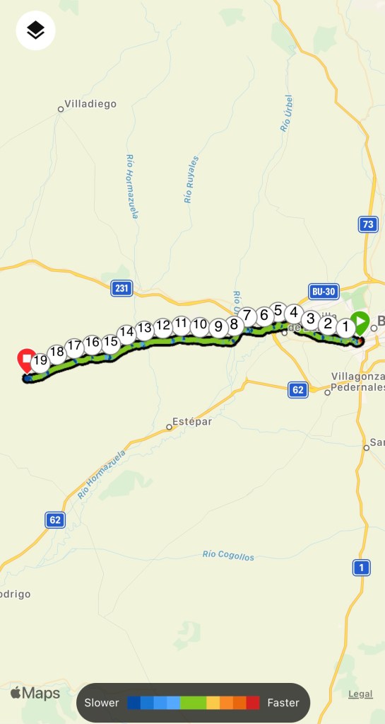 The last 8km into Carrion de los Condes follows the road. We booked into Monasterio Santa Clara. Although basic, it is a dry place for the night.