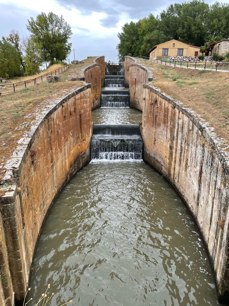 The path eventually gets to a 14m long lock that marks the point to leave the canal into Fromista. We stopped at the first bar for breakfast, enjoying the warmth inside.